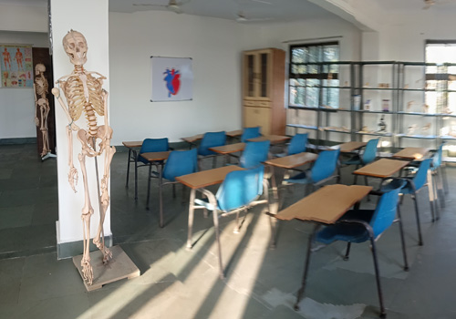 The Anatomy and Physiology Lab is a foundational facility for nursing students to understand the human body's structure and function. This lab is well-furnished with human skeletons, anatomical models, preserved specimens, charts, and advanced 3D visuals that aid in the exploration of internal organs and systems. Through hands-on practice and demonstrations, students gain essential knowledge of human anatomy, which is crucial for clinical practice. The lab encourages observational learning and helps students link theoretical knowledge with real anatomical features, laying the groundwork for future clinical and diagnostic understanding.